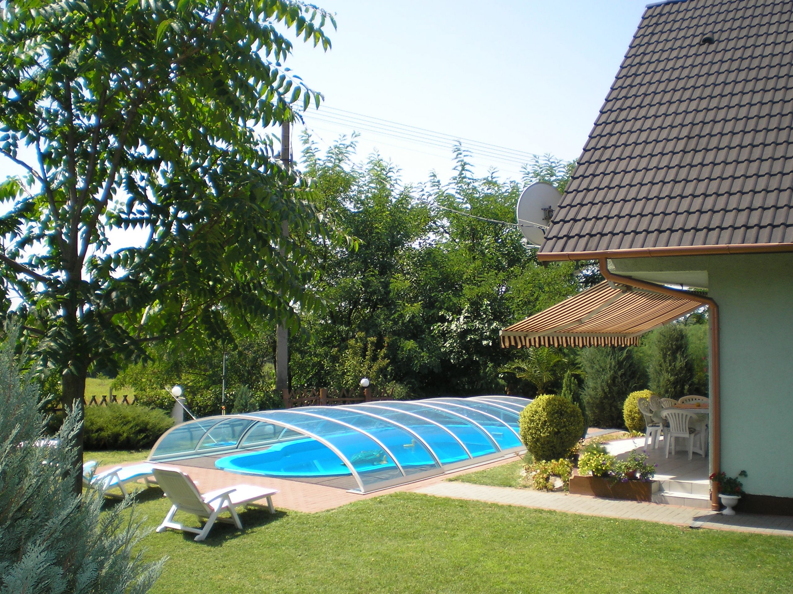 Élvezze a nyugalmat tágas udvarral, medencével és családbarát szórakozási lehetőségekkel.